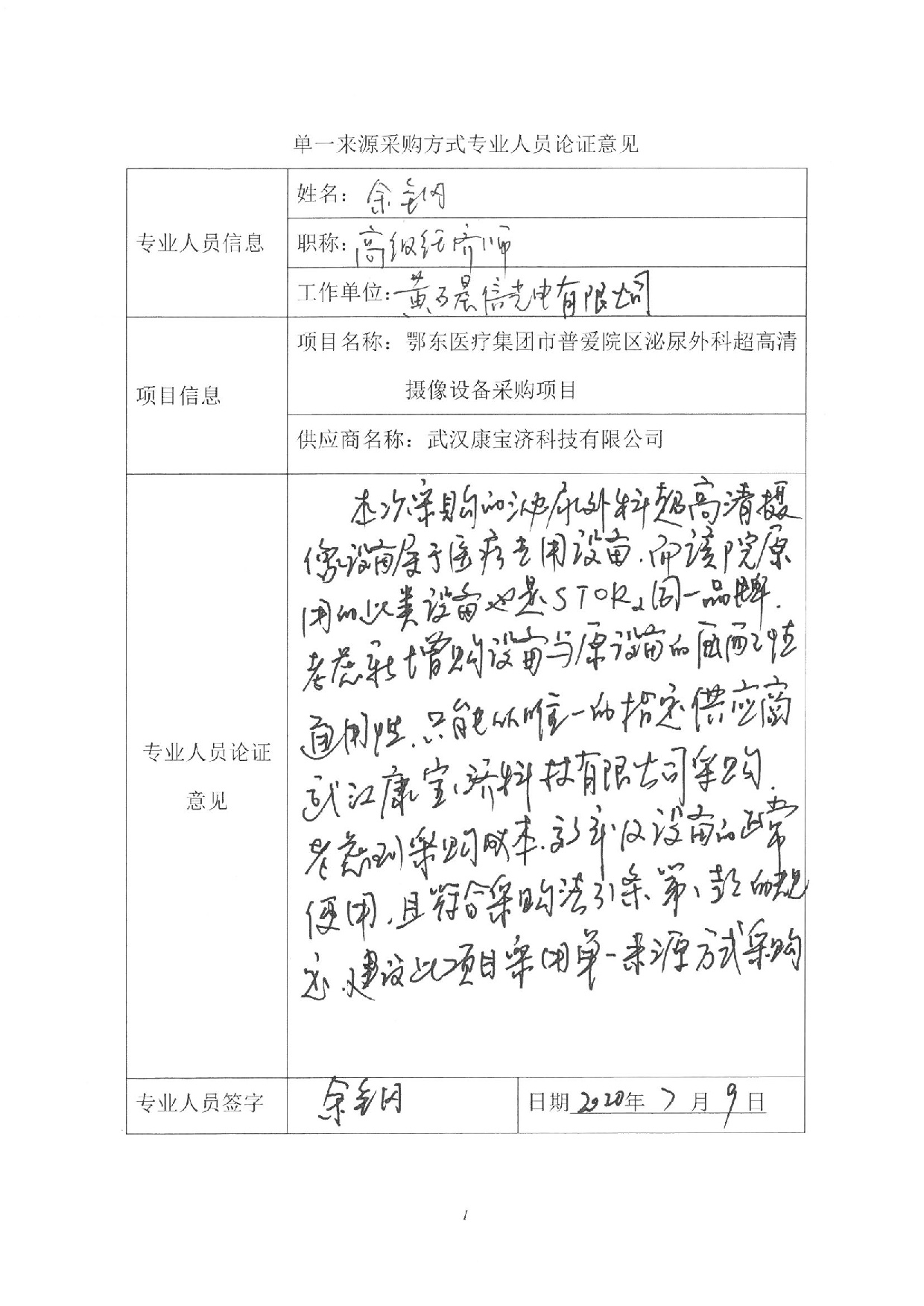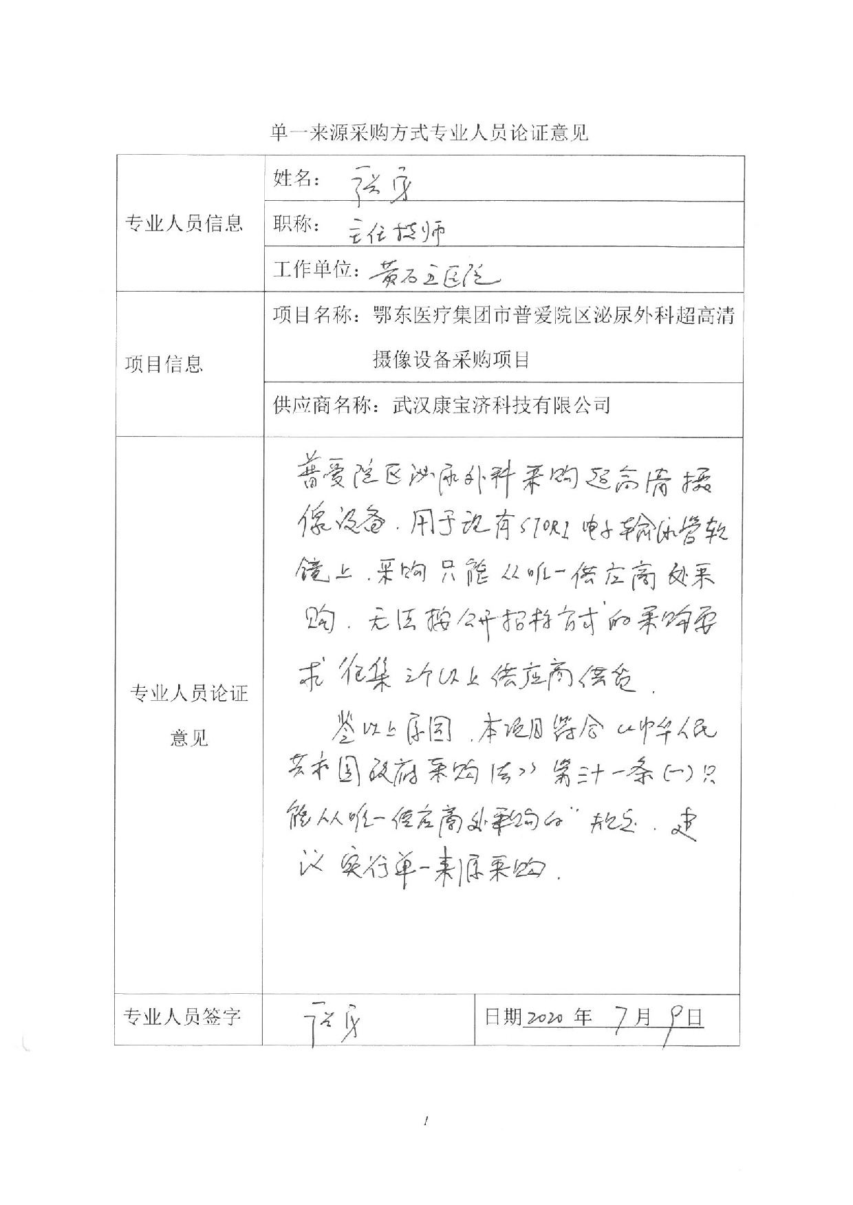 鄂東醫(yī)療集團(tuán)市普愛醫(yī)院于2017年采購一套電子輸尿管鏡,現(xiàn)因醫(yī)院發(fā)展需要配備與電子輸尿管鏡相兼容的成像系統(tǒng),目前其他廠家無法滿足需求,特此說明。