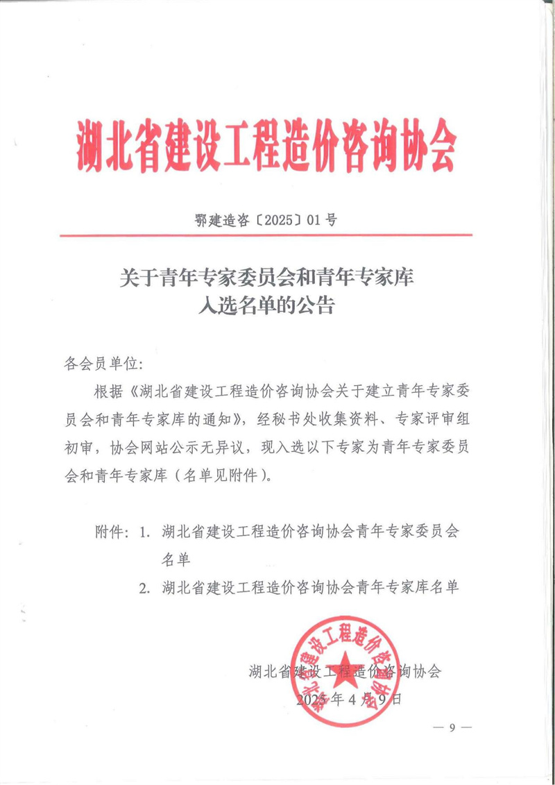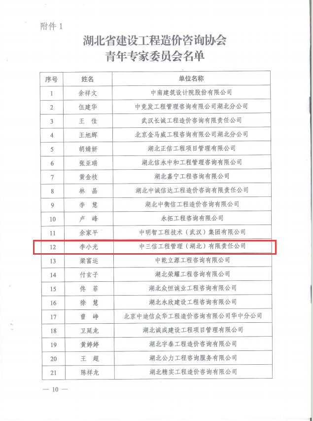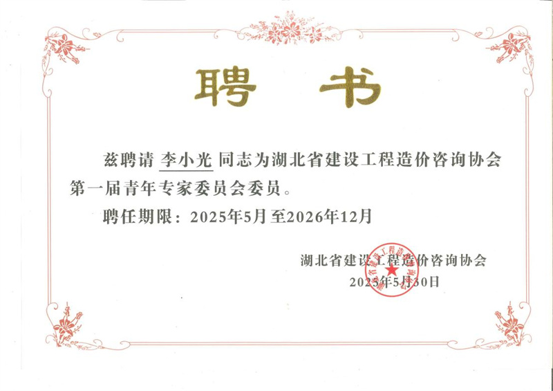 2025年5月30日,湖北省建設(shè)工程造價咨詢協(xié)會青年專家委員會成立大會暨第一次工作會議在武漢隆重召開。我司副總工程師、一級注冊造價師李小光受聘擔(dān)任協(xié)會第一屆青年專家委員會委員,這是協(xié)會對我司專業(yè)能力的認(rèn)可與肯定。
