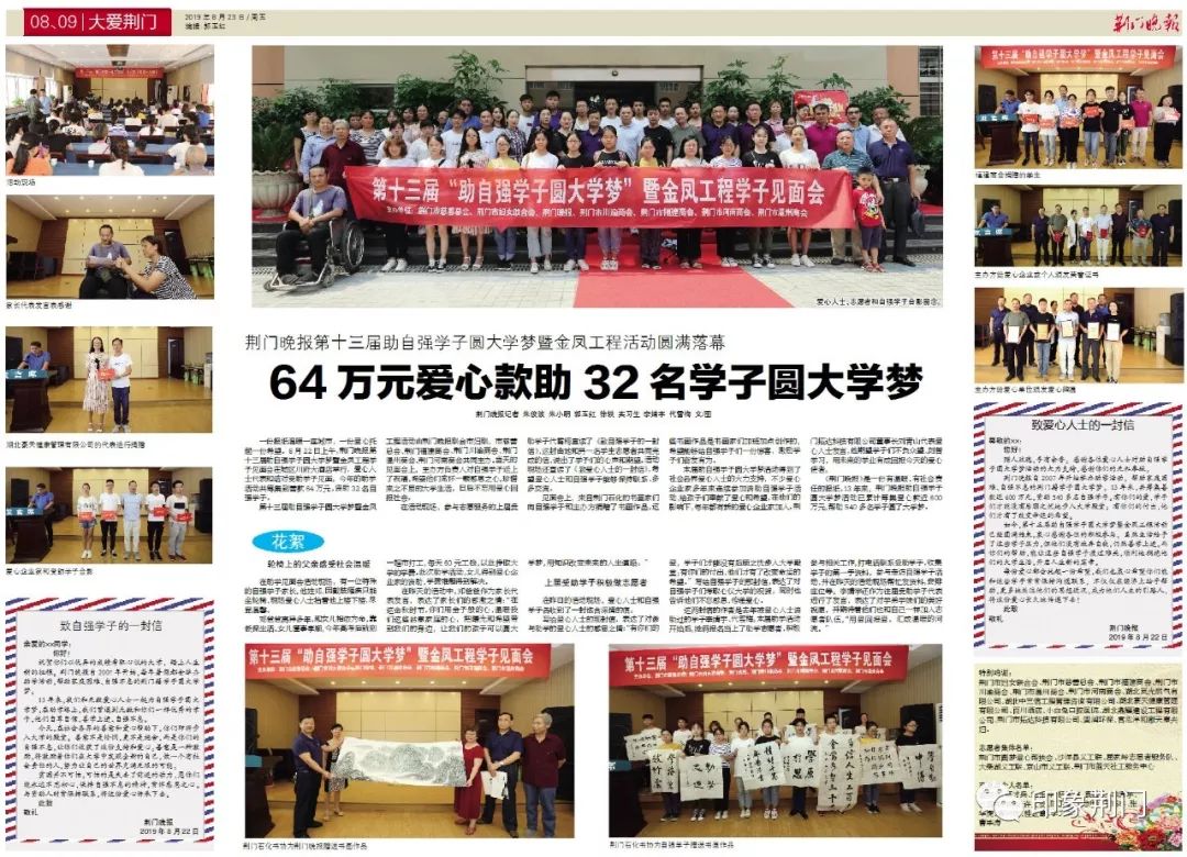 《荊門晚報(bào)》是一份有溫暖、有社會(huì)責(zé)任的報(bào)紙,13年來,荊門晚報(bào)助自強(qiáng)學(xué)子圓大學(xué)夢活動(dòng)已累計(jì)籌集愛心款近600萬元,幫助540多名學(xué)子圓了大學(xué)夢。