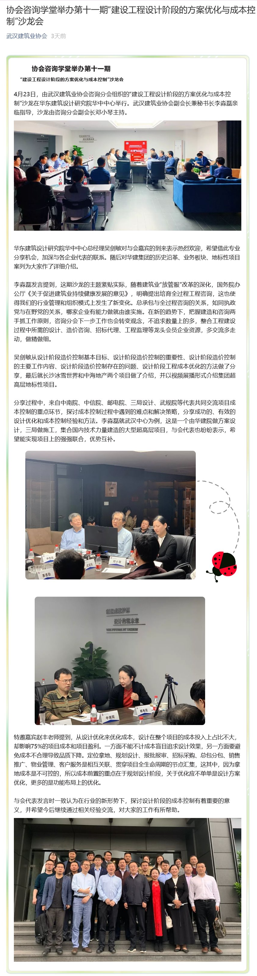 協(xié)會咨詢學(xué)堂舉辦第十一期“建設(shè)工程設(shè)計階段的方案優(yōu)化與成本控制”沙龍會